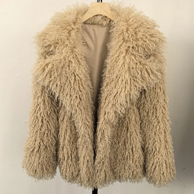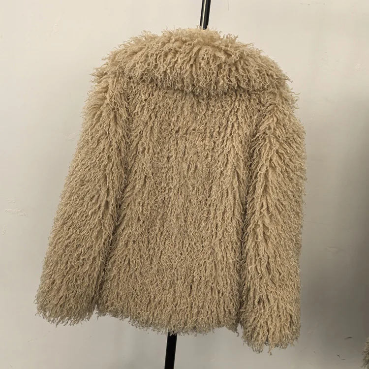 Aynaray 2025 Winter Women Faux Fur Jacket Solid Khaki Long Sleeve Thick Warm Outwear Fluffy Coat For Women