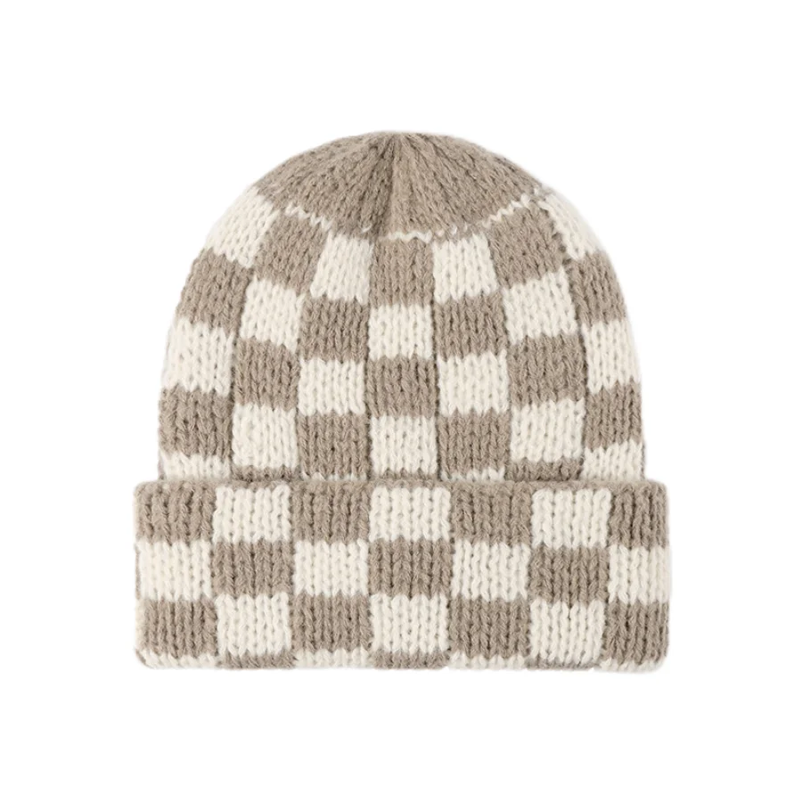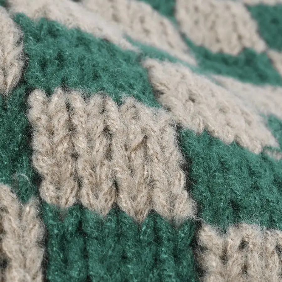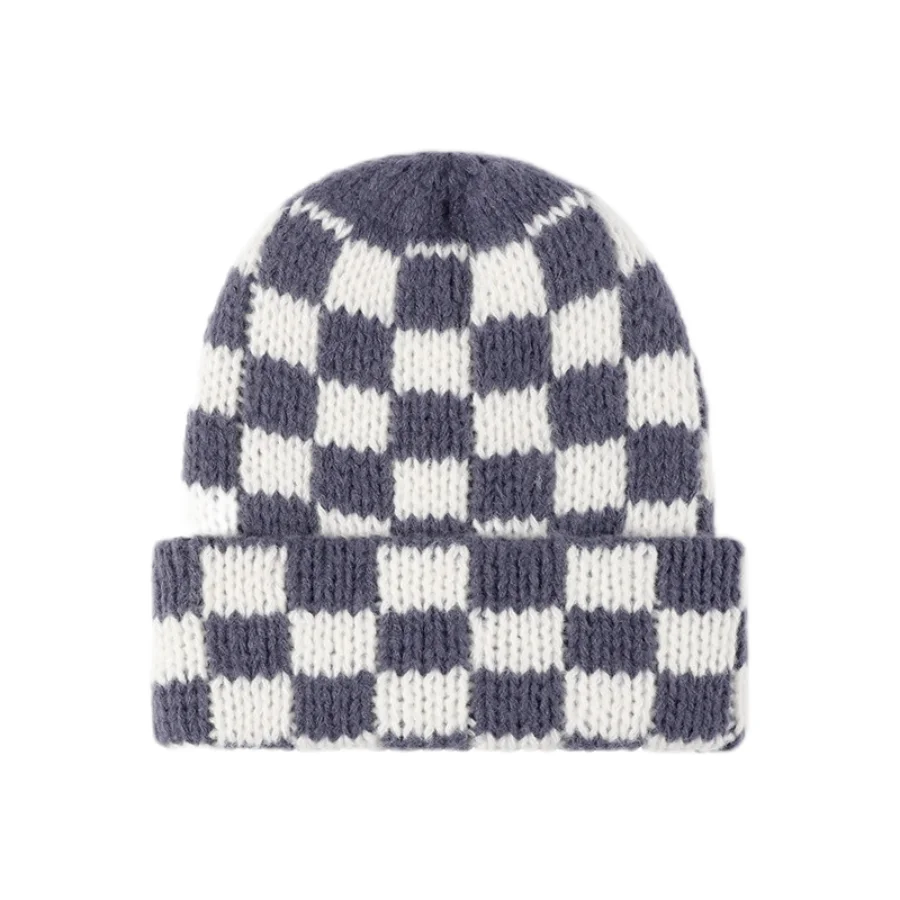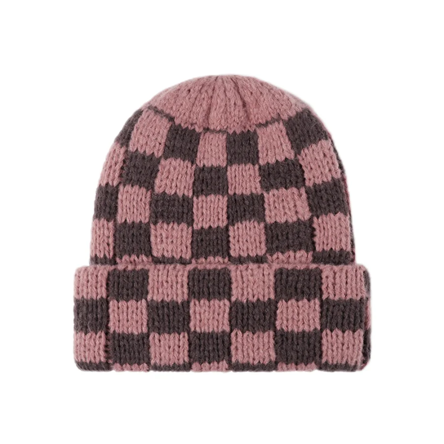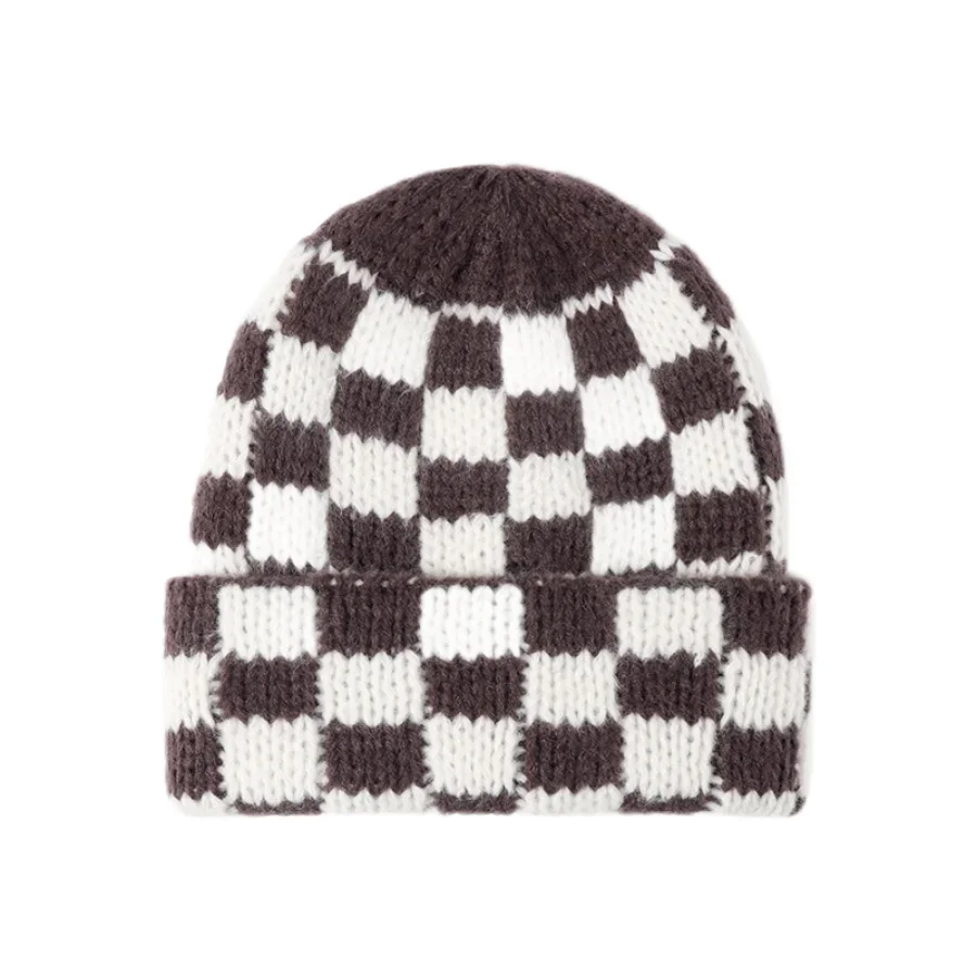Fashion Vintage Chessboard Plaid Knitted Hat Women Winter New Big Size Hat Warm Beanies Green Red Xmas Christmas Hat