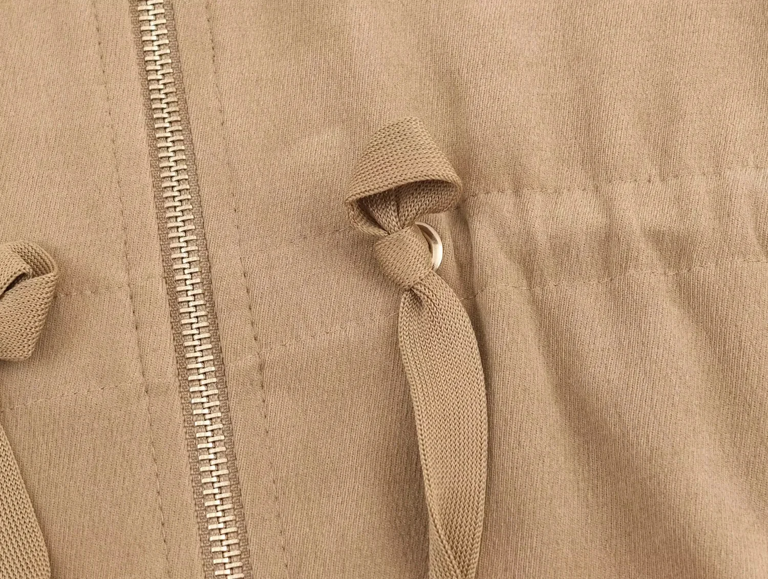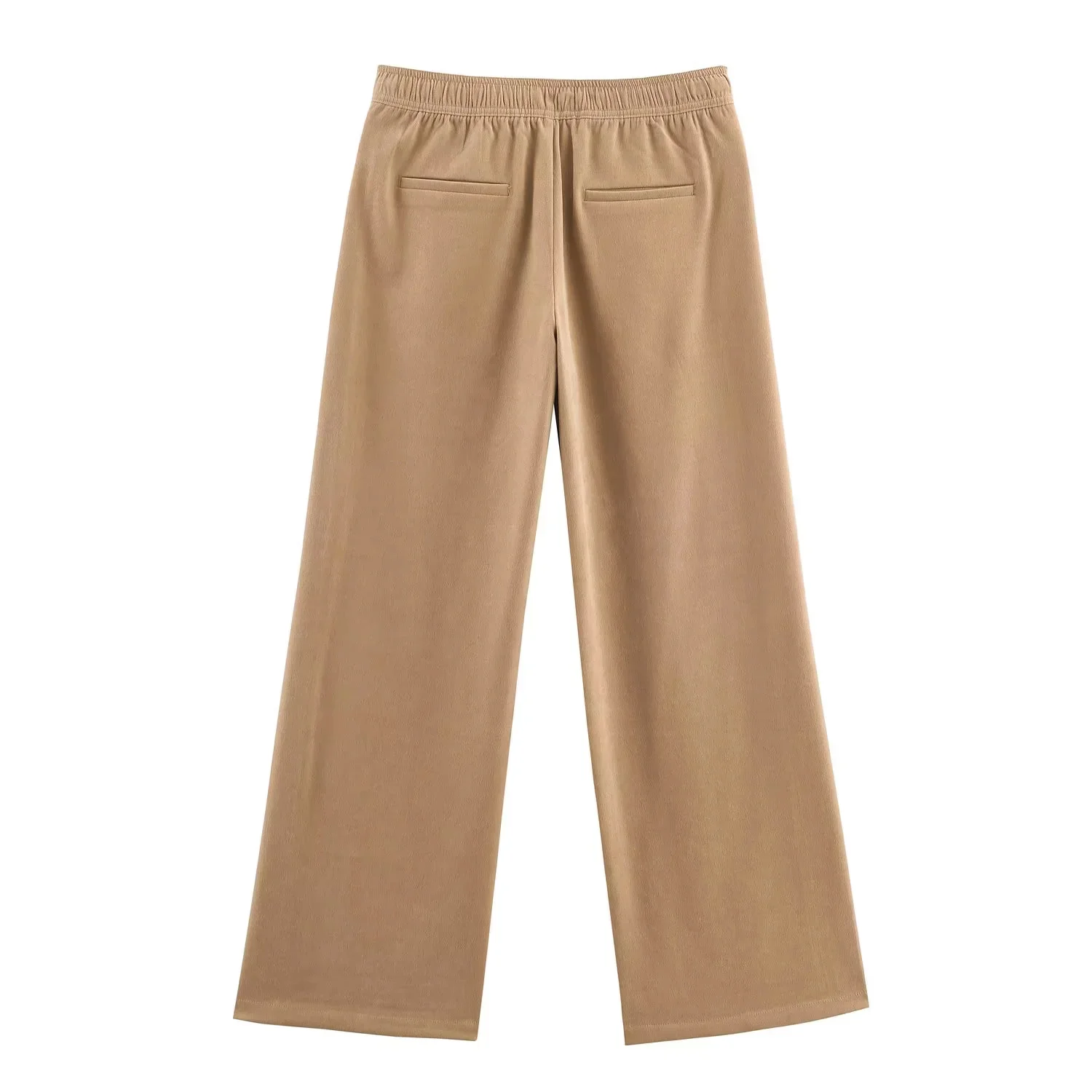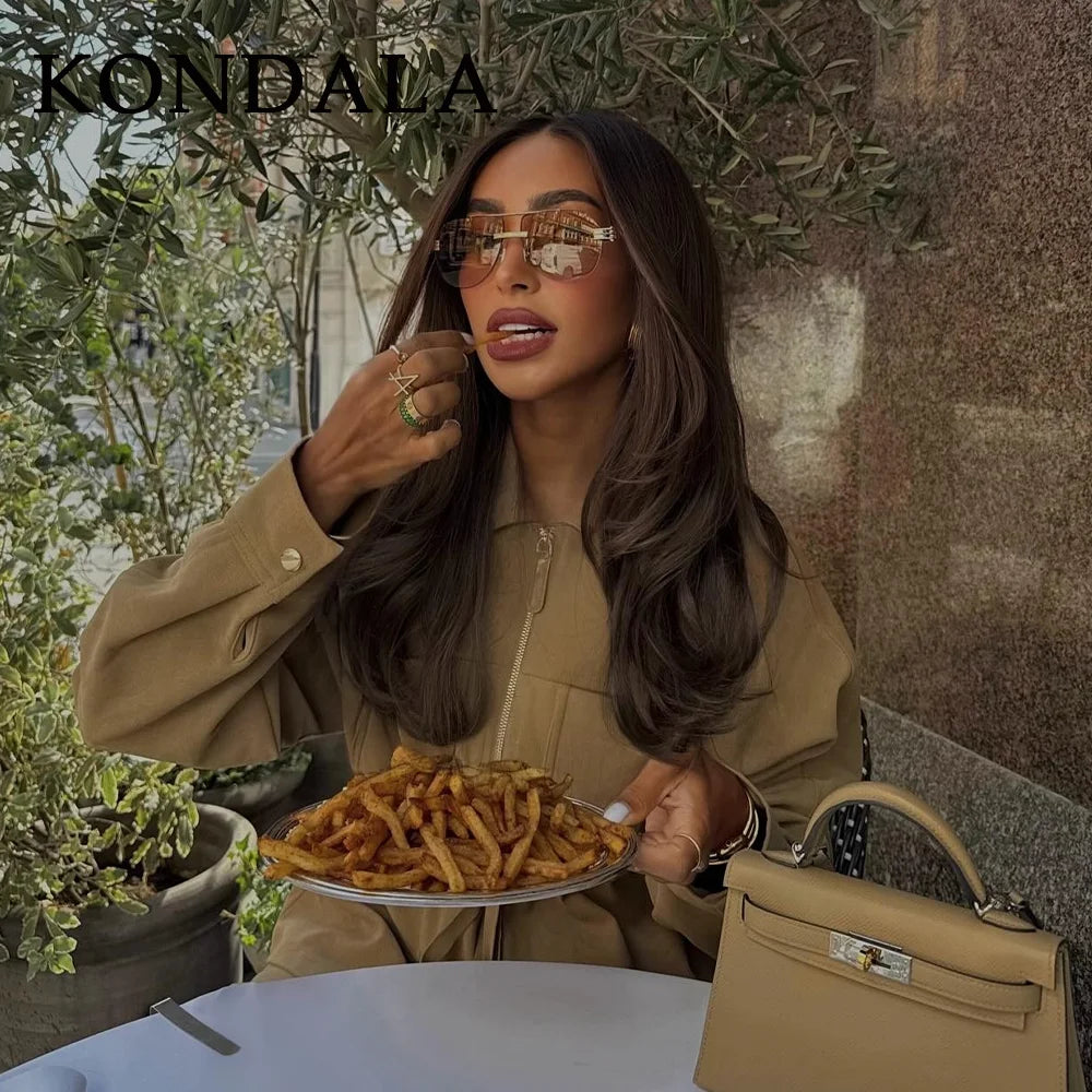 KONDALA 2025 Fall Winter Streetwear Solid Women Lace Up Suits Fashion Elegant Turndown Collar Zip Up Jackets Chic Wide Leg Pants