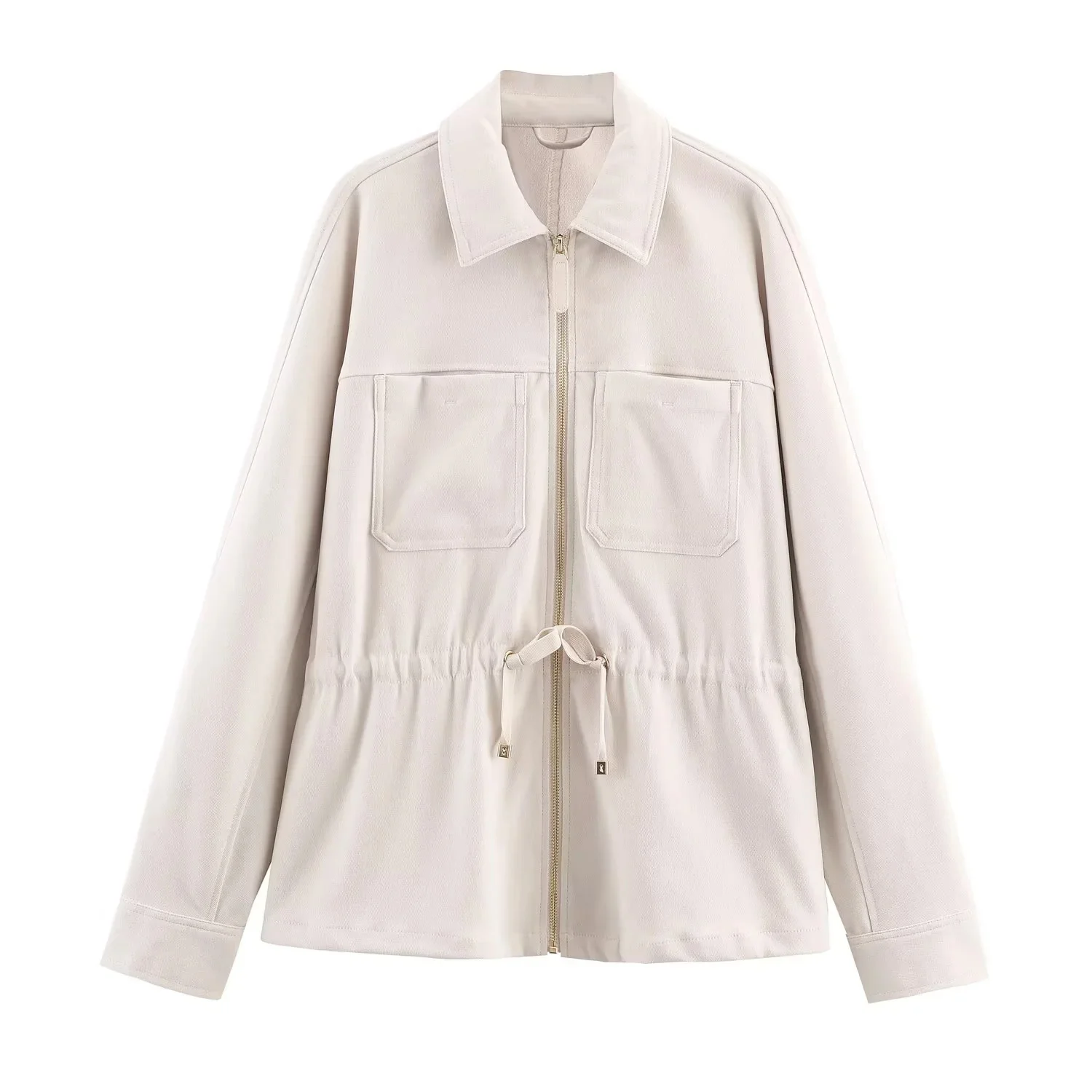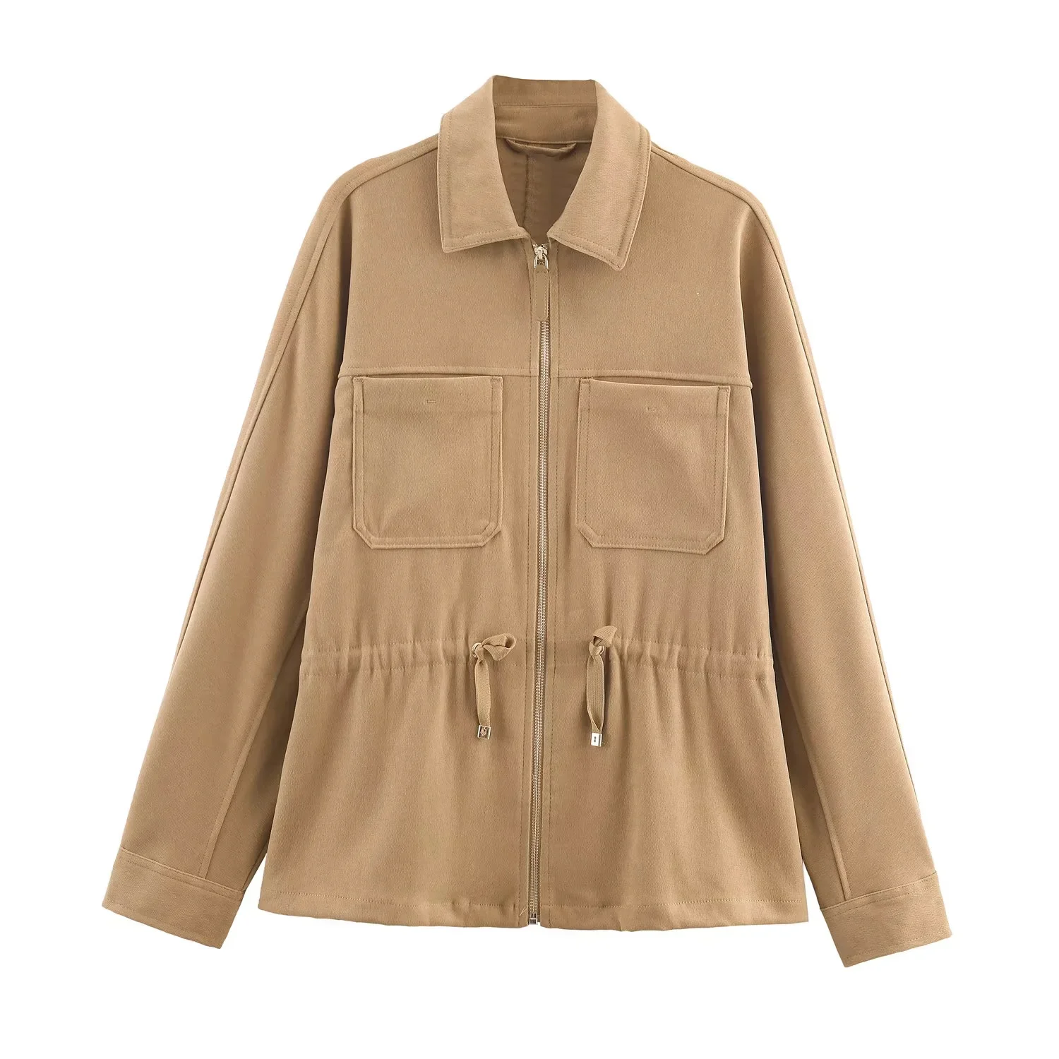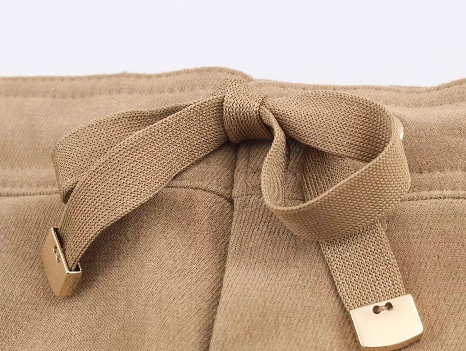 KONDALA 2025 Fall Winter Streetwear Solid Women Lace Up Suits Fashion Elegant Turndown Collar Zip Up Jackets Chic Wide Leg Pants