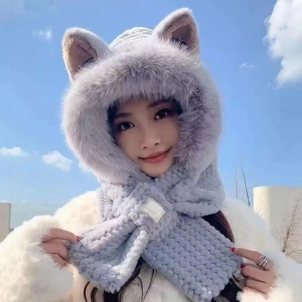 3. The integrated hat and scarf design makes it easy to wear, and the earmuffs provide effective protection from cold winds.