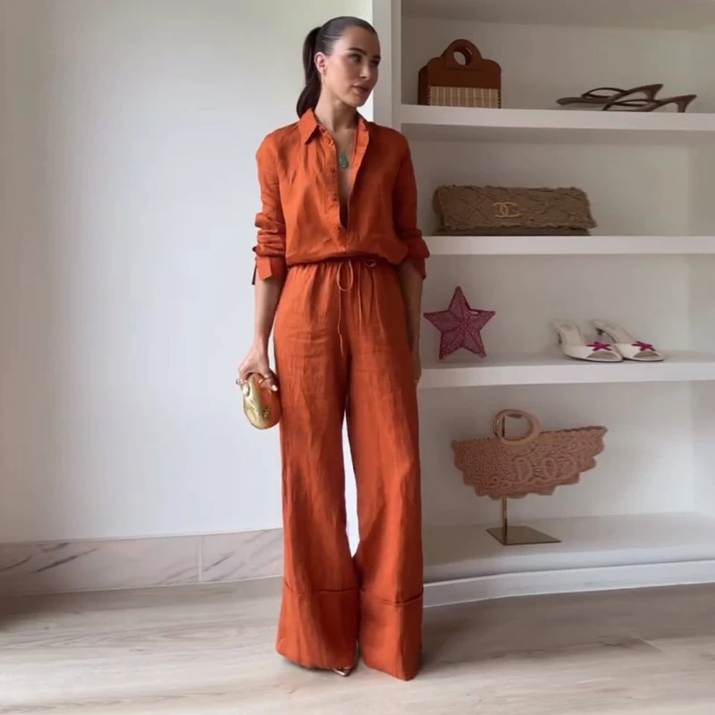 This pant set offers a versatile style, perfect for various occasions whether it's for work or casual outings.